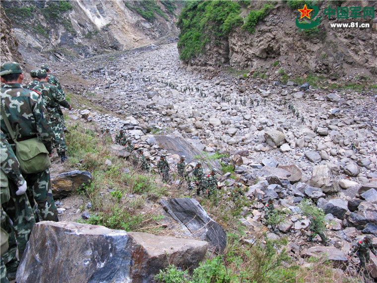 周志诚回忆到:“看到山上下来的滚石较少时,安全员就指挥我们逐车快速通过。”当时为避免出现意外情况同时也为了赶时间,通过该处路段时大部分救灾官兵就下车开始徒步强行军向茂县挺进,车队则等到道路彻底打通后才向前开进。车辆通过期间有好几次巨石飞滚而下,差点砸中正在驶过的车辆,处在车队中间位置的周志诚不禁为战友捏了一把汗,好在全程有惊无险。