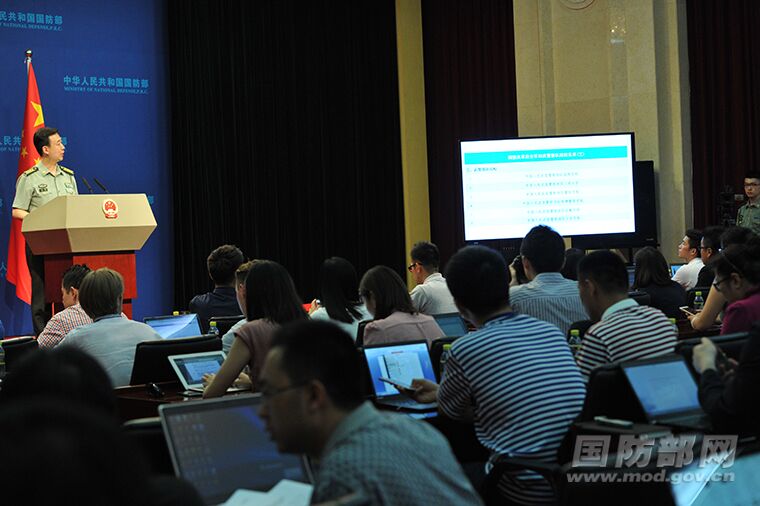 国防部新闻局副局长、国防部新闻发言人吴谦大校答记者问。李爱明 摄