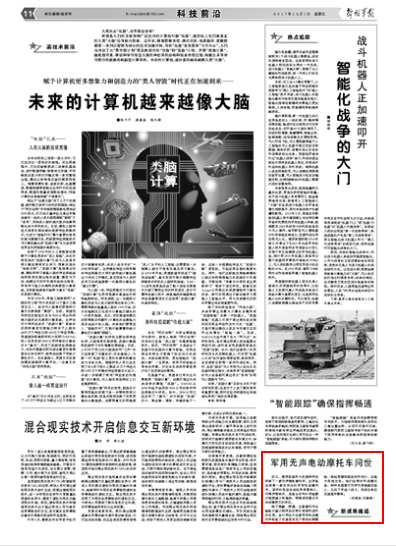 近日,俄罗斯宣布为本国特种兵研制了一款无声隐形摩托车,这将是全球第一款实用化的军用电动摩托车。当无声摩托车遇到特种兵,将发生怎样的化学反应?请关注今日出版的《解放军报》的详细报道——