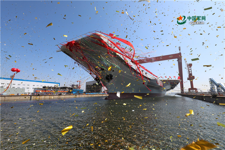 我国第二艘航空母舰下水仪式在中国船舶重工集团公司大连造船厂举行。