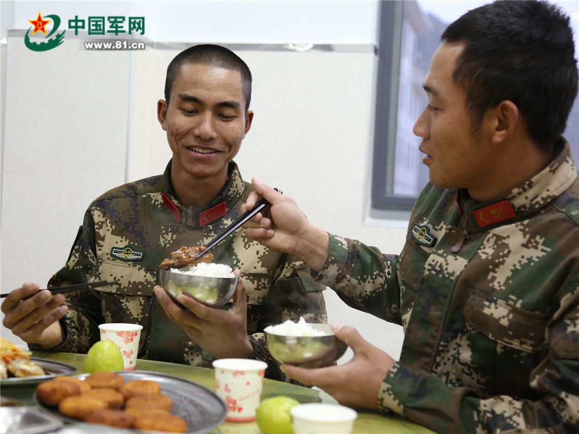 打从新训第一天开始,陈志文便对班里一名叫岩嘎的云南籍新兵格外关注。同样黢黑的脸庞,同样瘦削的身形,平日里不善言谈的岩嘎,每到休息时间就自己一个人执着得掐着被子,眼里交织着渴望被关注的希冀和自卑腼腆的孤独。在岩嘎的身上,他看到了自己新兵时的影子。“嘎子,过来陪我聊聊天。”一天上午课间休息时,陈志文生拉硬拽着岩嘎“侃大山”。