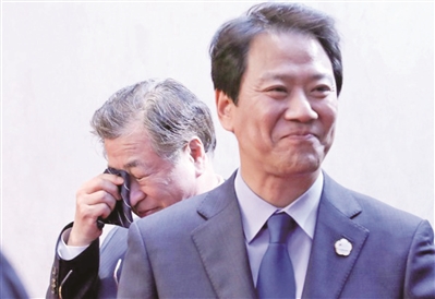 4月底,韩国总统文在寅与朝鲜领导人金正恩在板门店举行会谈并签署《板门店宣言》,一名头发花白的男子在观看该场面时默默地转过身去,拿着手帕擦拭眼泪。这个暗自流泪者便是韩国国家情报院院长徐熏(见图),促成此次历史性峰会的关键人物。