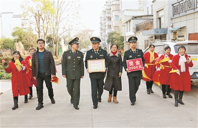 在工作计划中,很多人武部和部队单位把给立功官兵家庭送喜报列为专项工作。同样是在12月13日这天,陕西省凤翔县横水镇东塬村锣鼓喧天,鞭炮齐鸣,县人武部、退役军人事务局等军地领导来到立功军人王红亮家中,郑重举行送喜报仪式。部队领导宣读立功受奖通令、讲述立功故事,当地人武部和退役军人事务局领导为军属发放绶带和佩戴红花。