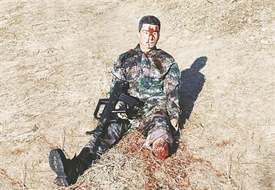 突然,一个“伤员”被炸飞到离张杰不到半米远的地方。“伤员”发出求救的惨叫,身体在不断发抖,被“炸断”的大腿血肉模糊、白骨暴露,动脉血喷涌而出。