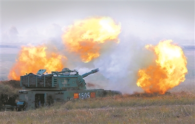 图②:我军自行榴弹炮进行火力打击。李宗元摄