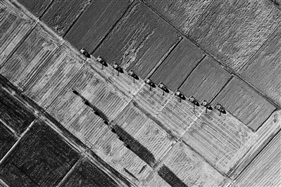 上图:金秋十月,黑龙江农垦建三江管理局勤得利农场,呈现一派丰收景象。这是种植户驾驶机械在稻田作业。 新华社发