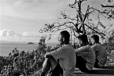 图①:望海;图②:雷达站成立一支“海天乐队”,每当海风吹拂,水兵的歌谣如此动听;图③:日复一日,海岛雷达兵在山路上巡逻,他们用双脚走出一条条“兵路”;图④:夕阳下的幸福剪影,这是小岛上最温馨幸福的时刻。 龚 豪摄