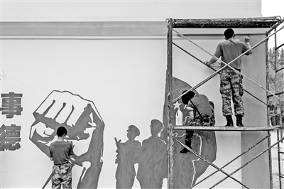 噌!分队长程静先站了起来:“教导员,你这个教育方式倒是有新意,可这难度也太大了。这墙长12米,高4米,位置显著,是咱们营区的‘脸面墙’,要是砸在大家手里,可没法交代呀!”紧接着不少官兵都发表了类似的看法。