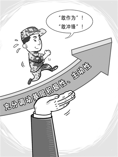 建设“三个过硬”基层,是党委机关的职责。要想基层跑得快,就要为基层创造条件,充分调动他们的积极性、主动性,让他们放开手脚大展拳脚,真正在自主建设中创造佳绩。如果管得过死、统得过严,不给基层留足空间,又想让基层冲锋,那是很难见到质量效益的。