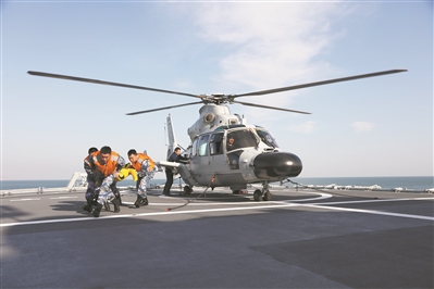 “方位××,发现5名‘落水人员’!”直升机迅速确定目标位置。