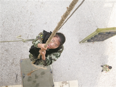 驻守祖国西南边陲的武警第二机动总队某部,有这样一群女兵,她们平均每天训练10小时以上,与男兵同时进行全副武装越野、擒拿格斗、攀登索降、实战化射击等课目训练。目的只有一个:打造一支特殊的特战尖兵分队。