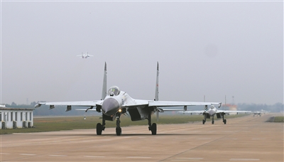 南国某机场,战鹰列阵,引擎轰鸣,海军航空兵某旅一场空中对抗训练拉开战幕。