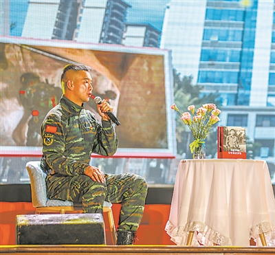 图③:武警广西总队柳州支队开展访谈式教育课,特战中队指导员张毅文作为访谈嘉宾,和大家分享自己的奋斗故事。