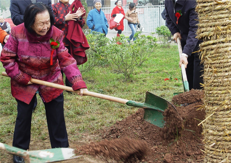 王定国在四川参加植树(2010年11月5日摄)。新华社发(谢亚旭提供)