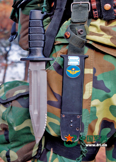 黄继光生前所在营营长刘君告诉记者,以伞兵携行系统中的必带装备伞兵刀为例,其单面刃口极其锋利,不仅能在跳伞中发生伞绳绕伞顶的危险情况下快速割断伞绳自救,还能在执行敌后侦察、破袭等任务中砍断防护铁丝网;刀背专门设计了锯齿,能锯断飞机铝壳和电缆以应对机降过程中的意外;刀柄顶端嵌入高灵敏度指北针,方便空降中和降落后判定方位;刀鞘背面还镶有磨刀石和联络哨,提高了野外生存能力和指挥效率;刀鞘下端装有螺丝刀、开瓶器和罐头刀等平战两用的小工具……一把30多厘米长的小小伞兵刀,几乎荟萃了“十八般武器”。