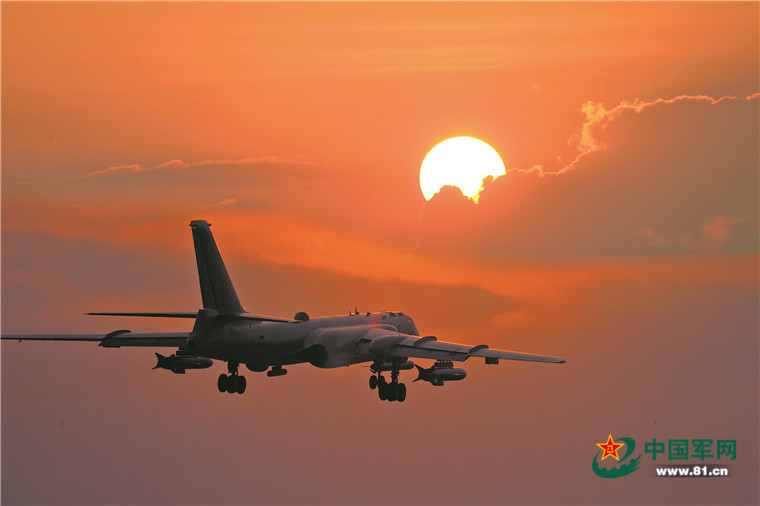 18时许,完成第一波次突击任务的4架轰-6K战机返场着陆。