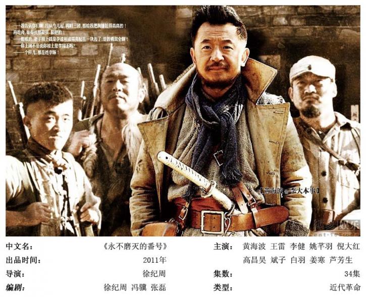《永不磨灭的番号》可以视为黄海波的战争戏代表做,区别于前面所盘点的抗战剧的一本正经,本剧有点搞笑,又有点让人心潮澎湃,是一部令人难忘的好剧,当然,说其搞笑,绝不烂俗到《举起手来》之流的下作。《永不磨灭的番号》讲述20世纪30年代,帝国主义的铁蹄肆意践踏古老的中华大地,敌人所到之处一片焦土,民不聊生,中华民族到了生死存亡的危急时刻。由黄海波饰演的武义县民兵队长李大本事,是一个有些狡黠却一腔热情与赤诚农家汉子,他打仗时候经常不按常理出牌,时不时又耍点儿小聪明,不过他的队伍却在抗击日寇的战争中打出了名气。在这一过程中,他与对头孙成海由对立到合作,与前国民党军官陈锋惺惺相惜。名头越来越响,自然引起日寇的高度关注,这些平凡的中国人与敌人的战争渐次白热化,他们也各自经历着种种生离死别。而最令李大本事挂心的,莫过于为自己的部队争取到一个光荣的永不磨灭的番号……