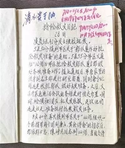 原38军前线总指挥、裴飞正副军长和战士们一起连续两天忍受着无水可喝的生理极限,他在7月28日的日记里,在最醒目的位置写下了“滴水贵于油”五个字……