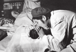 有的伤员手和胳膊受伤,吃饭喝水都不能自理,他们就一勺勺地喂饭喂水;有的伤病员呼吸困难,他们就口对口地进行人工呼吸;有的伤员大便解不出来,用药后也不见好转,他们就用手一点点儿地帮助他们抠;有的伤员小便排不出来,他们就用嘴含着导尿管,一口口地往外吸……