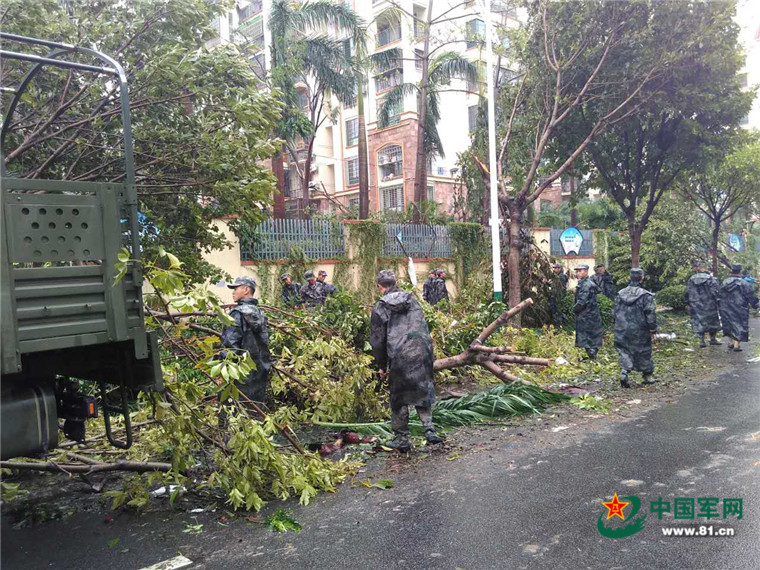 风未熄雨未停,迷彩绿来了、橄榄绿来了、海军蓝来了,六千多解放军来了,环卫、电力和水利抢修人员来了,新闻媒体记者、无私的志愿者来了,自发自救的人们来了,甚至老外也来了……他们在非战争军事行动中,像打仗一样投入和专注。你看,他们操作电动锯裁断树干树枝,突突的声音分明是红色的警告:台风来临千万别将车停在大树下;他们拿起扫帚清扫落叶、碎玻璃,路面重归清爽。尔后,装载机盛走满地泥泞和脏物,隆隆的声响,驱散了人民心头的阴霾,拉走黑色的咏叹;他们用起重机吊起伏地的大树,嗖嗖的牵引绳,缓缓扶正遮荫蔽日的大伞,升起了绿色的希望。