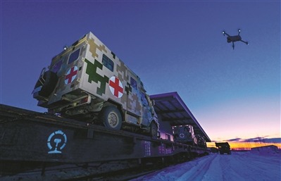 2月19日,北部战区驻黑龙江某军代室联合联勤保障部队第963医院、驻地某部和某人武部等单位,组织开展军事运输装卸载训练,其间无人机表现抢眼,为军事运输保障助了一臂之力。