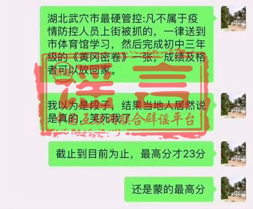 谣言一、乱上街的人员被抓去体育馆考黄冈密卷?