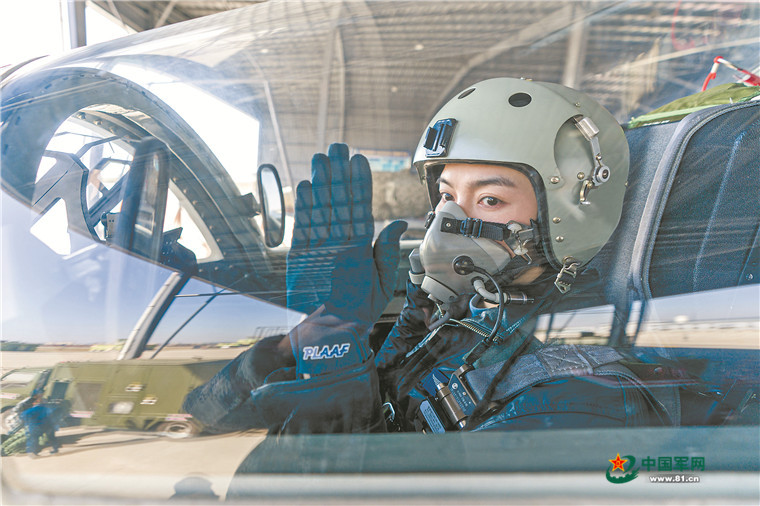 上图:高溥宇驾驶战机起飞前示意。 杨 盼摄