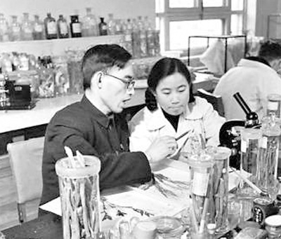 20世纪50年代,屠呦呦(左二)与老师楼之岑副教授一起做研究。资料照片