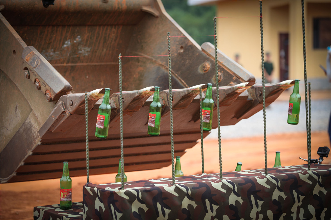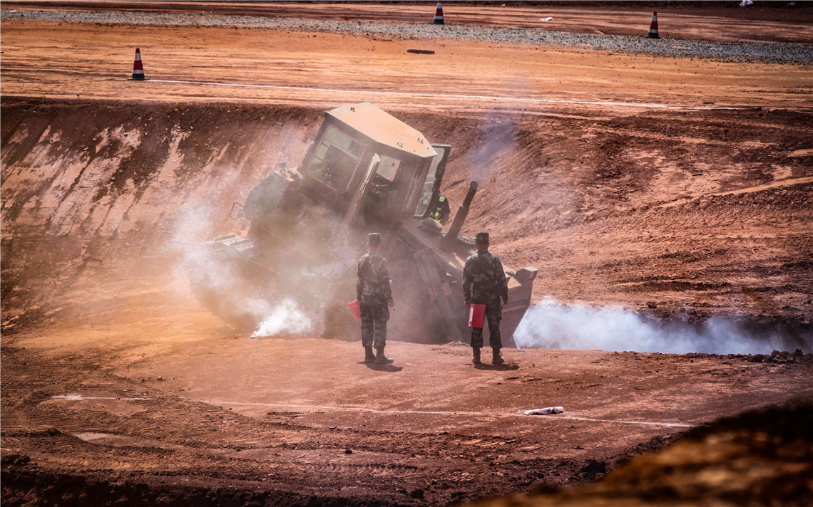 在挖掘机操作课目的比武场上,操作手要先后完成过S型路、抢通道路、攀爬陡坡等课目。在要求速度的同时,也考验操作手的操作技能和心理素质。