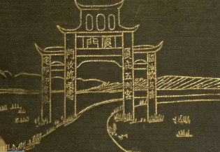 1912年,美国归正教会牧师菲力浦·威尔逊·毕(Philip Wilson Pitcher)在大洋彼岸出版了《厦门概况》(In and About Amoy)一书。该书封面绘有一幅四柱三间三楼不出头式牌坊插图(见下图),坊额上题刻“厦门”两个篆字。两根边柱上的楹联为:“福地钦名胜,建邦仰阜康”,两根中柱上的楹联为:“厦庇五洲客,门收万顷涛”,句首暗藏“福建厦门”四字,堪称城市宣传语的佳构。