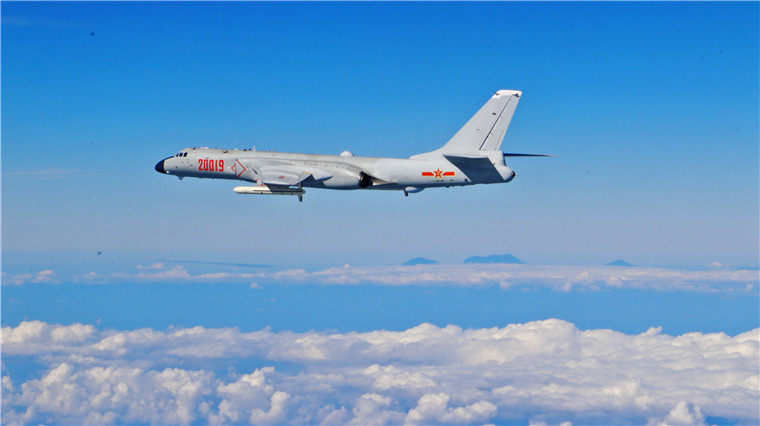 空军航空兵某团团长陈亮驾驶“战神”轰-6K绕岛巡航。杨勇摄