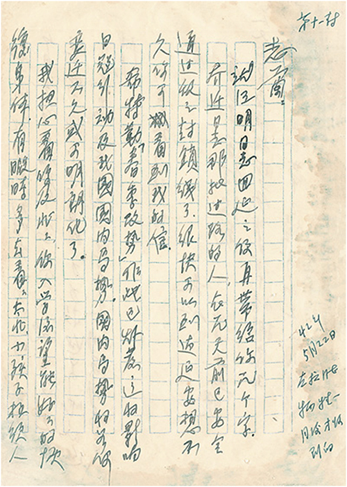 在我看来,这封信就像一份遗书。姥爷知道当时面临的危险,他已经做好了所有的心理准备。在他用全部情感去想象着美好生活的同时,他也做出了最坚决的牺牲。