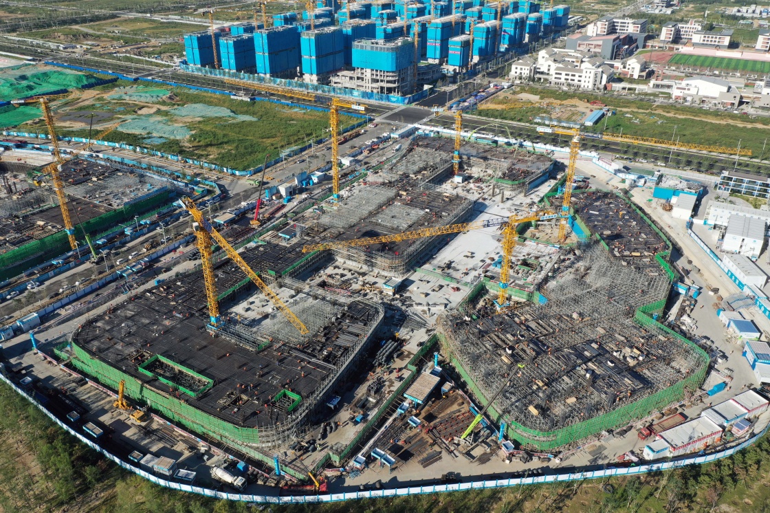 位于雄安新区启动区的中国星网雄安新区总部大楼建设施工现场(2022年9月7日摄,无人机照片)。新华社记者 朱旭东 摄