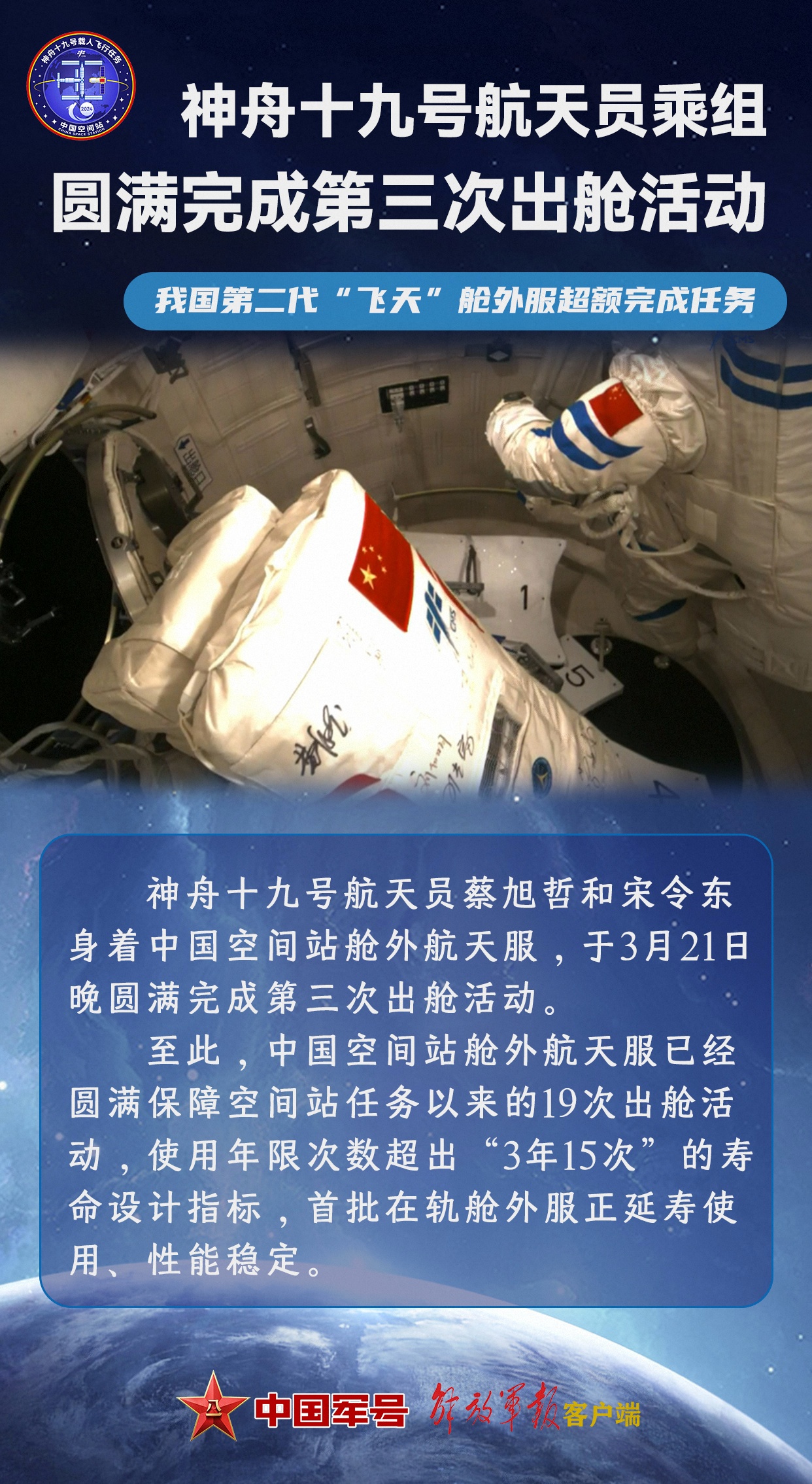 3月21日,春分刚过,距地面约400公里的神舟十九号航天员乘组开启第三次出舱之旅。航天员蔡旭哲、宋令东、王浩泽在浩瀚太空,用精准操作续写中国航天新的传奇。