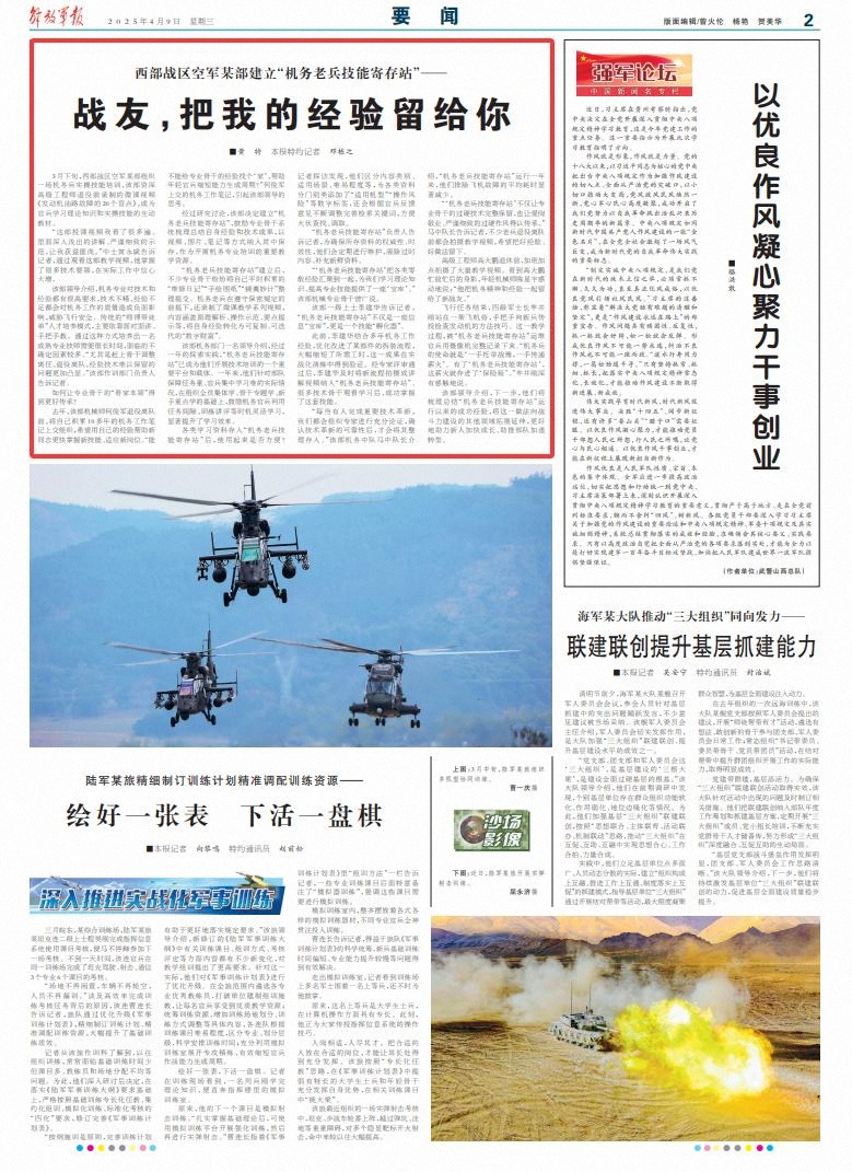 “‘机务老兵技能寄存站’把各类零散经验汇聚到一起,为我们学习理论知识、提高专业技能提供了一座‘宝库’。”该部机械专业骨干曾广说。