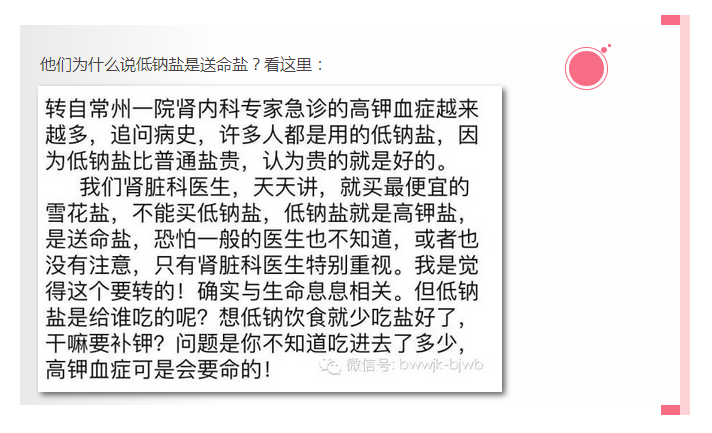 最近这两天,朋友圈里都在转“肾内科医生”的提醒,说的是低钠盐就是送命盐!