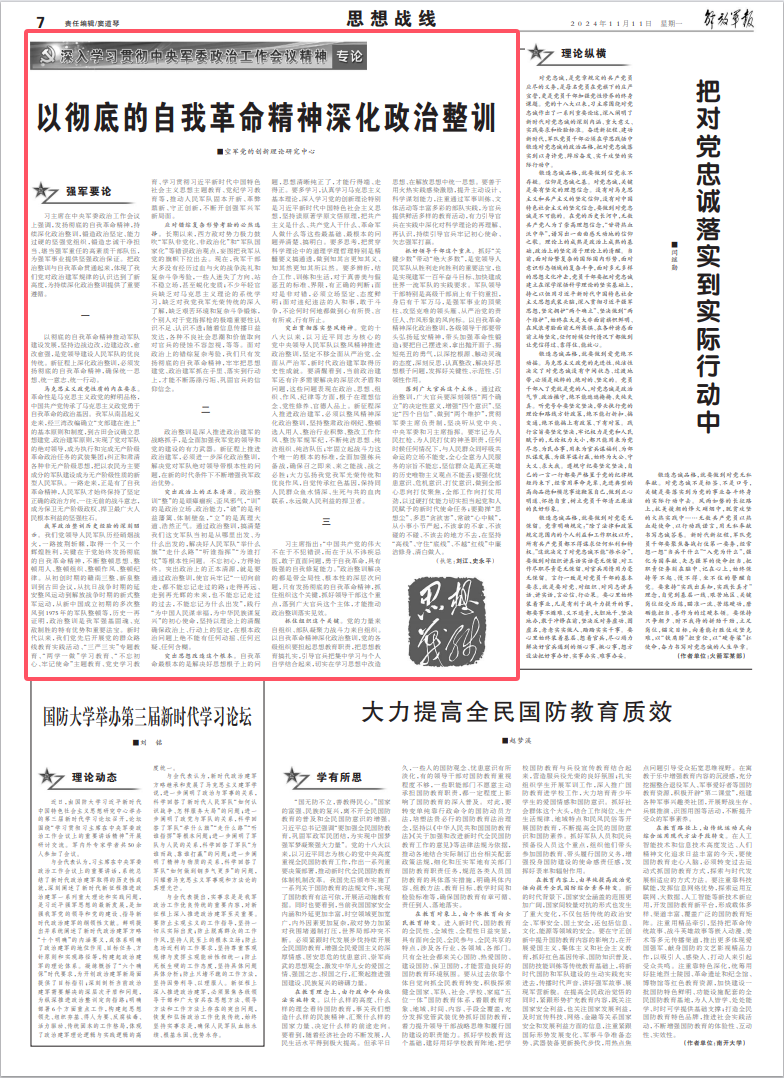 以彻底的自我革命精神深化政治整训