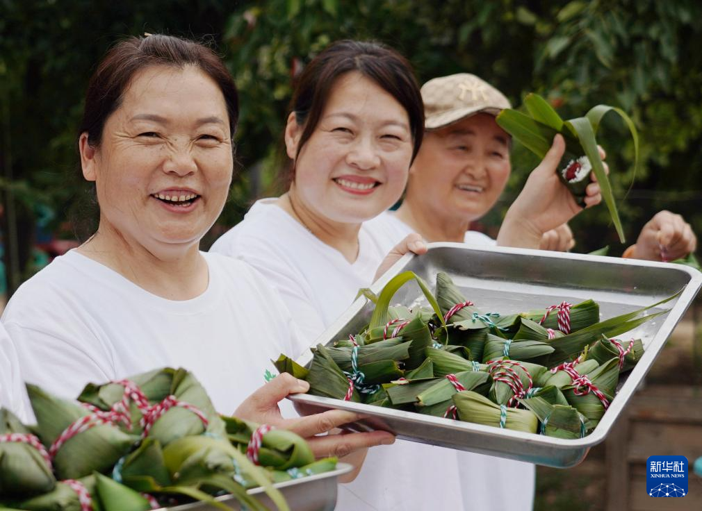 6月5日,河北省固安县马庄镇林子里村的村民展示包好的粽子。新华社发(门丛硕摄)