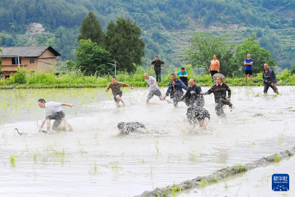 6月5日,重庆市酉阳土家族苗族自治县花田乡何家岩村的村民参加庆端午民俗活动。新华社发(陈碧生摄)