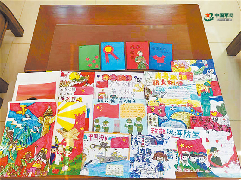 珠海市学生为边海防官兵寄送的手抄报、贺卡等。薛鹏 摄