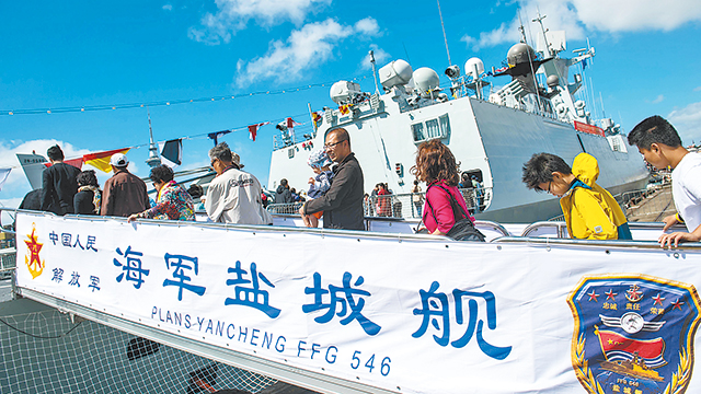 2016年11月20日,中国海军盐城舰举行甲板开放日,吸引众多民众参观。张金加 摄