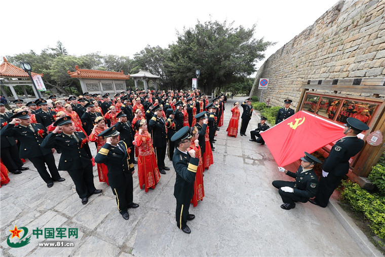 行程满满,一路收获。新人们上午刚参观完营区,近距离感受军营线条与阳刚之美,下午又来到爱国主义教育基地接受精神洗礼。“我志愿加入中国共产党……”新人中24对党员夫妻举起右拳,面对党旗重温入党誓词,一字一句、铿锵有力,回荡在海天之间,也充盈在每个人心中。“担当新角色,踏上新征程,更要不忘共产党人的初心,牢记使命、砥砺前行!能够以这样的仪式纪念我们的爱情,我感到非常荣幸。我会恪守好自己的诺言,用爱守护她一辈子。”该部宣传干事李柱这样表达心声。