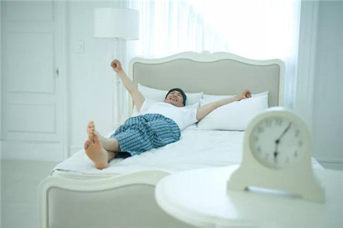 躺平,头略后仰,两脚和两手做伸屈运动,打开一夜睡眠后僵硬的关节。