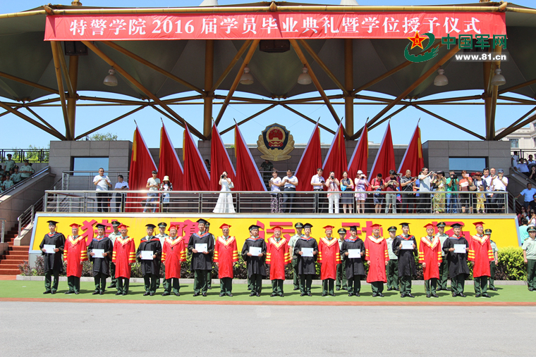 7月12日,武警特警学院营区内举行了一场特殊的毕业典礼,来自全国13个省市的学员亲属共同见证了2016届学员毕业典礼暨学位授予的神圣时刻。
