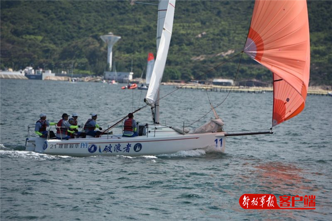 今天首轮发出起航信号,起航线一打开,各船队就鱼贯而出。其中青岛科技大学率先冲出起航线,也有的船队因为抢航而被单召,在规定时间返回后重新起航。迎风赛段第一圈,厦门大学一路赶超,率先迎风绕过一标并保持这个优势到终点,夺得本轮第一。我们与大连海事大学、青岛科技大学尾随其后。经过激烈的角逐,第一轮我们位列第四。