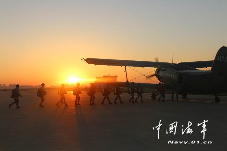 中国军网-中国海军网讯(赵驰、吴哲、张国强、徐亮)8月9日5时10分,辽东湾畔某机场,迎着初升的旭日,海军航空兵学院某团两架某型运输机搭载数十余名飞行学员,飞赴指定空降地域,拉开了该部飞行学员跳伞训练的序幕。