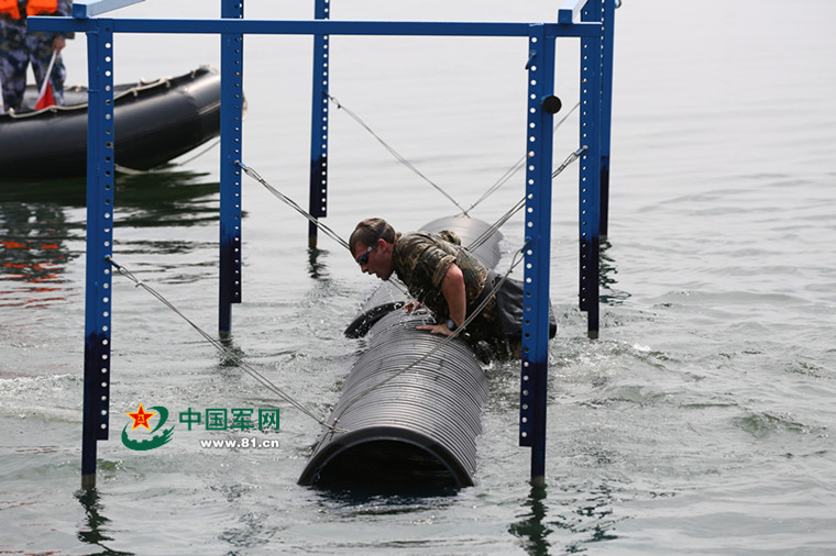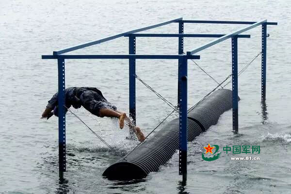 “妈妈和女朋友掉到水里先救谁?”请不要再问兵哥哥这个问题了。他们一个鱼跃进入水中,全副武装3分钟内依次通过滑梯、鱼雷管、浮桥、横木、油污池、高台等多项水中障碍。