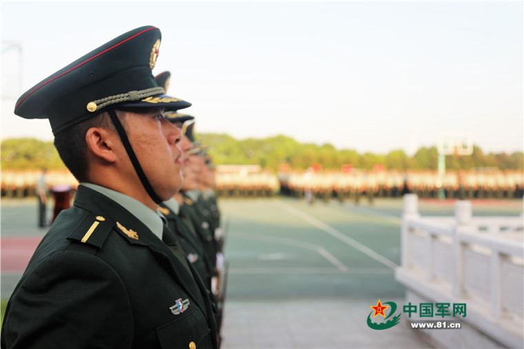 国防科技大学举行新学期升旗仪式 官兵戴新式军帽