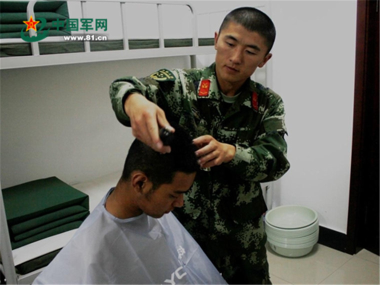 军营里,刚健的发型是新兵的标配,体现出军人的阳刚气质,新训班长们个个都是优秀的理发师,他们购置了理发工具,推子、平剪、牙剪、卡尺……