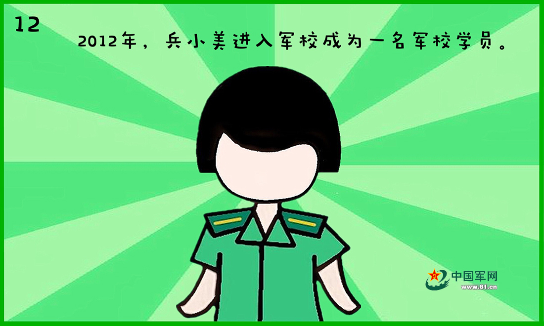 2012年,兵小美进入军校成为一名军校学员。